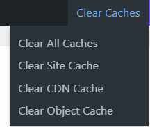 在網站最上方的找到「Clear Caches>Clear All Caches」選單點選即可清除快取。